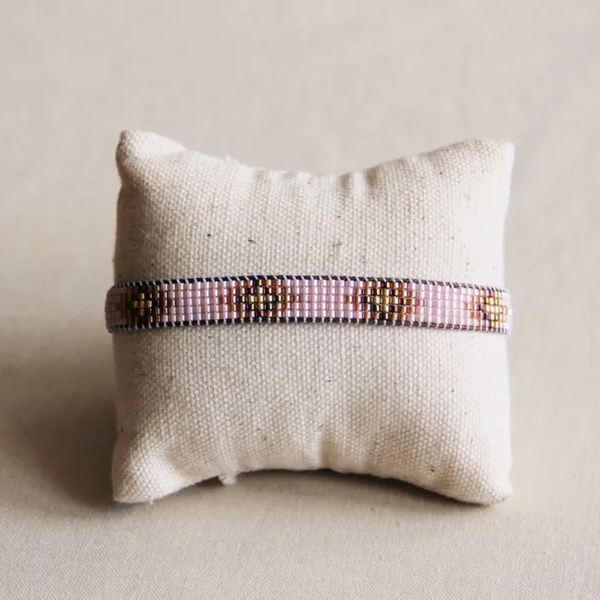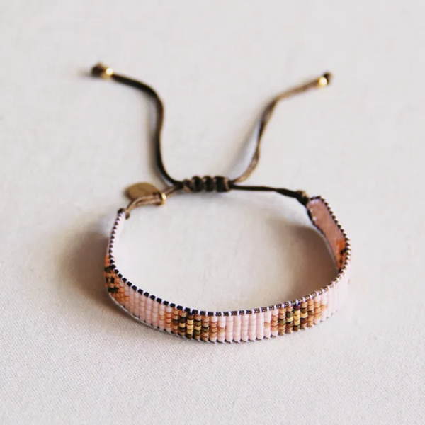 Weefarmbandje nude/cognac/goldplated
