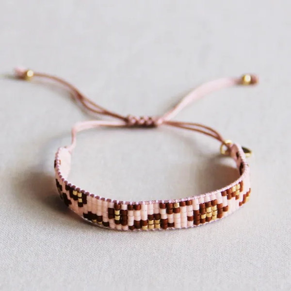 Weefarmbandje met leopard print - cognac/peach