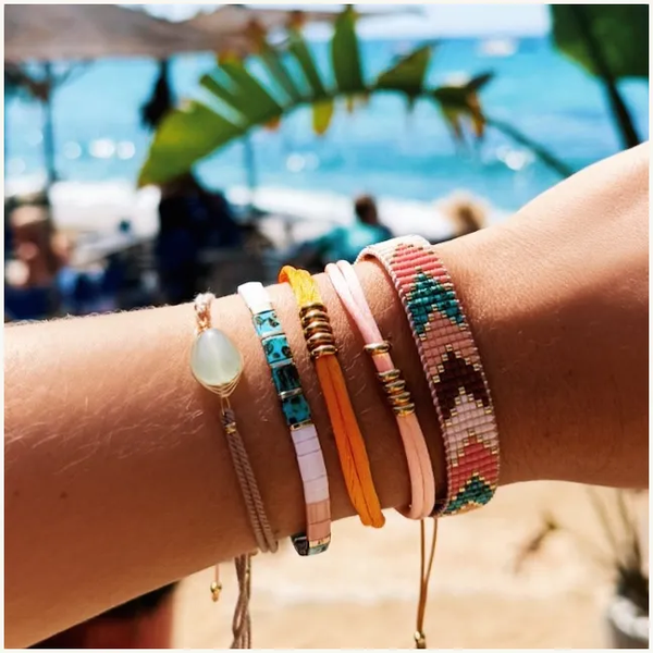 Het armbandje is voorzien van een schuifknoopjes en daardoor verstelbaar.
