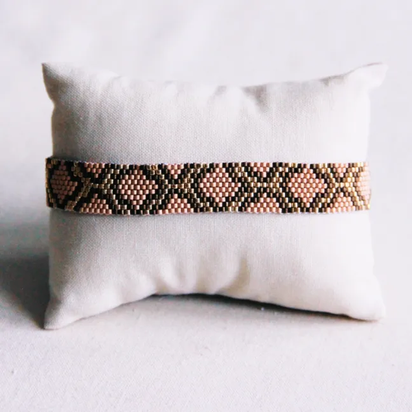 Het weef armbandje is voorzien van een schuifknoopjes en daardoor verstelbaar.