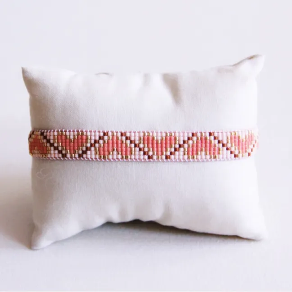 Weefarmbandje met hartjes patroon - koraal/cognac