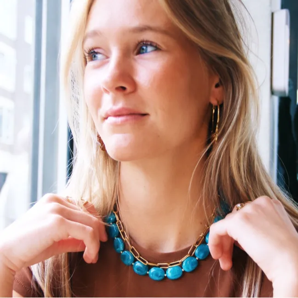 De ketting is 40 cm lang , maar is door de schakels op meerdere standen te dragen