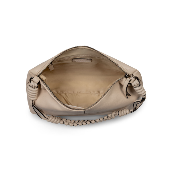 De Hamar is een moderne schoudertas met een uniek design en een speels gevlochten handvat. Dankzij de afneembare en verstelbare schouderband kun je de tas zowel stijlvol over de schouder als praktisch crossbody dragen.