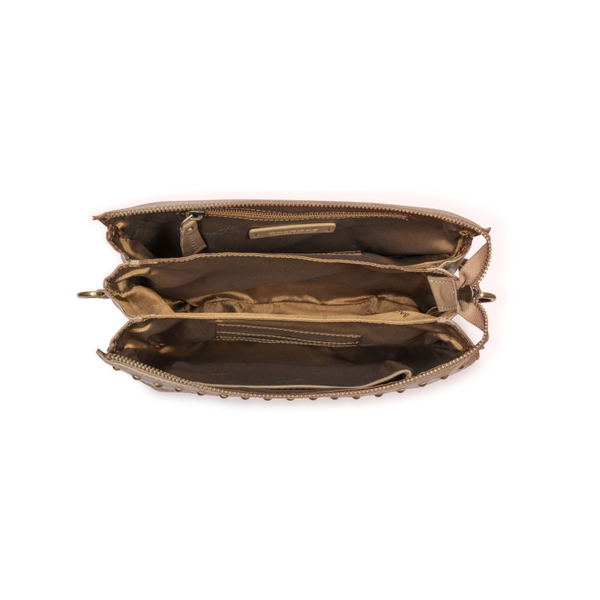 De Yale is een stoere crossbody tas met stijlvolle studs als detail. Het slimme ontwerp met meerdere vakken en ritsen maakt deze tas ideaal om je essentials georganiseerd en veilig mee te nemen.
